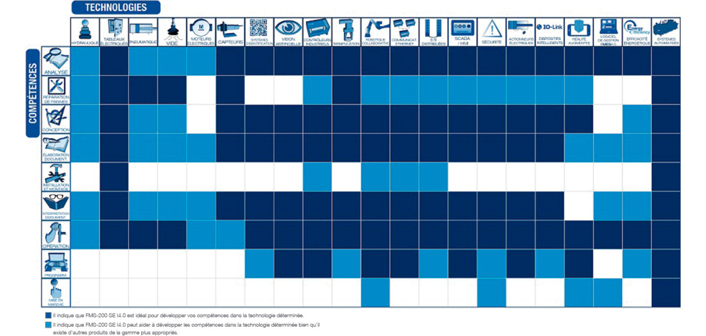 Système de mécatronique avancé d’apprentissage dans l’Industrie du Futur. Augmentez vos connaissances sur les technologies de l’Industrie du Futur et développez des compétences poussées en mécatronique en utilisant une plateforme basée sur le monde industriel réel. Tous les composants de FMS-200 Version Spéciale - Industrie du Futur sont utilisés dans l’industrie de façon à ce que l’utilisateur puisse toujours travailler avec des éléments industriels et progresser de manière réellement significative dans son apprentissage.